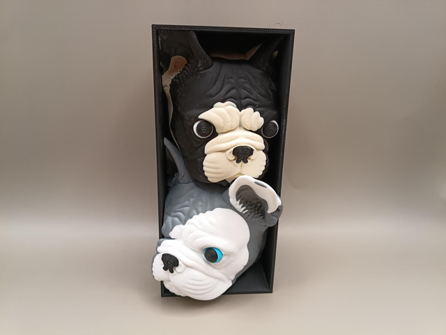 Add a charming, canine-inspired touch to your bookshelf with this 3D-printed book vnook. Crafted from eco-friendly PLA filament, this compact diorama features two friendly bulldogs peeking out from between your favorite titles, creating a cozy and welcoming scene for dog lovers.