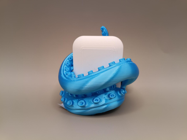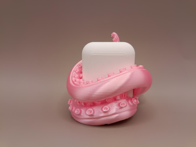 Submerge your charging case in the grasp of the deep with this unique 3D printed AirPods stand. Featuring a detailed octopus tentacle design, this stand securely cradles your case while adding a touch of whimsical, nautical flair to your desk or nightstand.