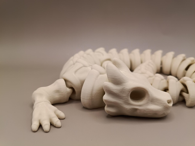 Unleash a touch of fantasy with this captivating 3D printed skeleton dragon. Its highly articulated, segmented body allows for fluid, lifelike movement, making it an engaging and unique Flexi toy perfect for fidgeting or display. The detailed skeletal design adds a slightly spooky, yet charming, aesthetic to any collection.